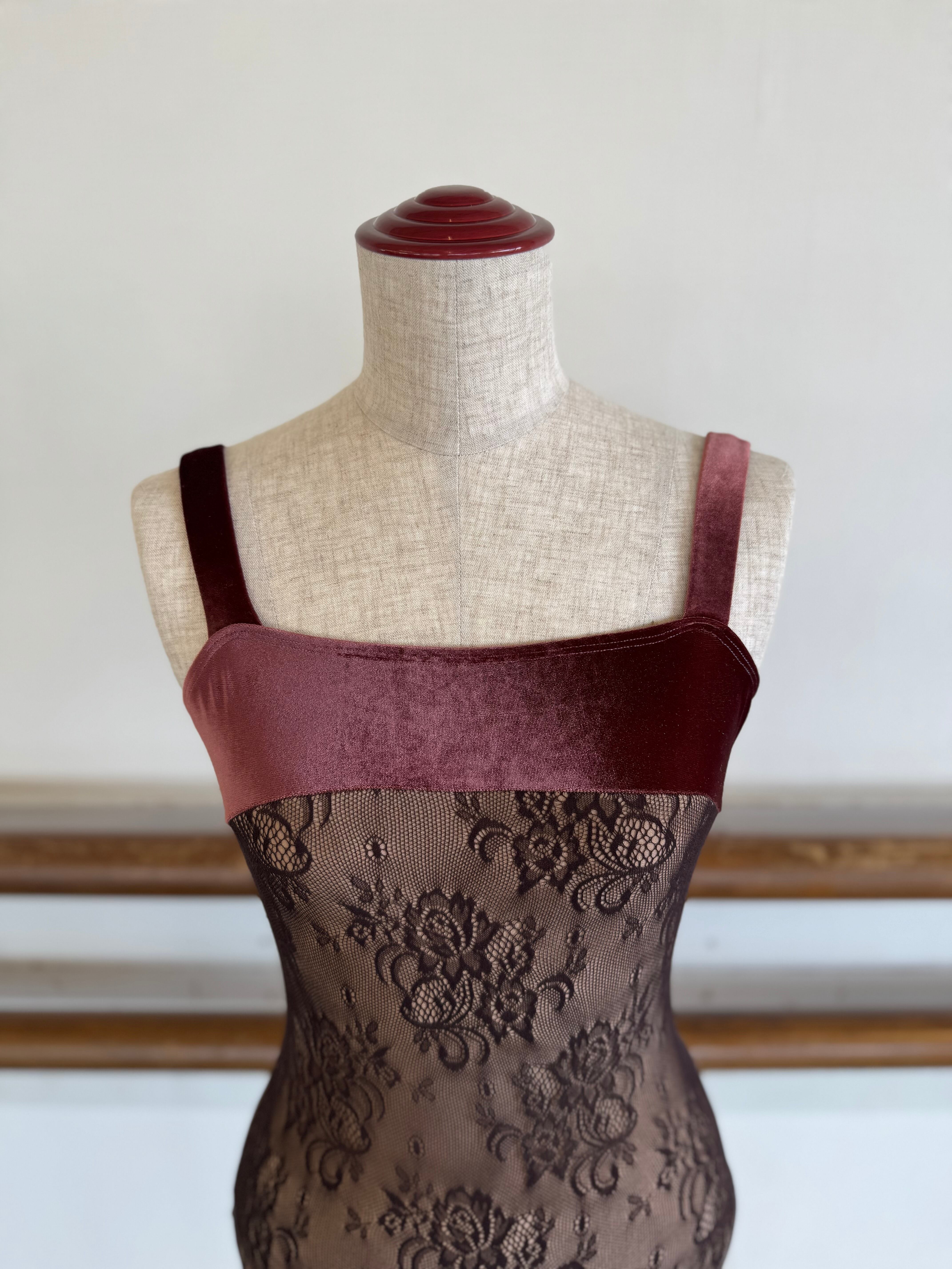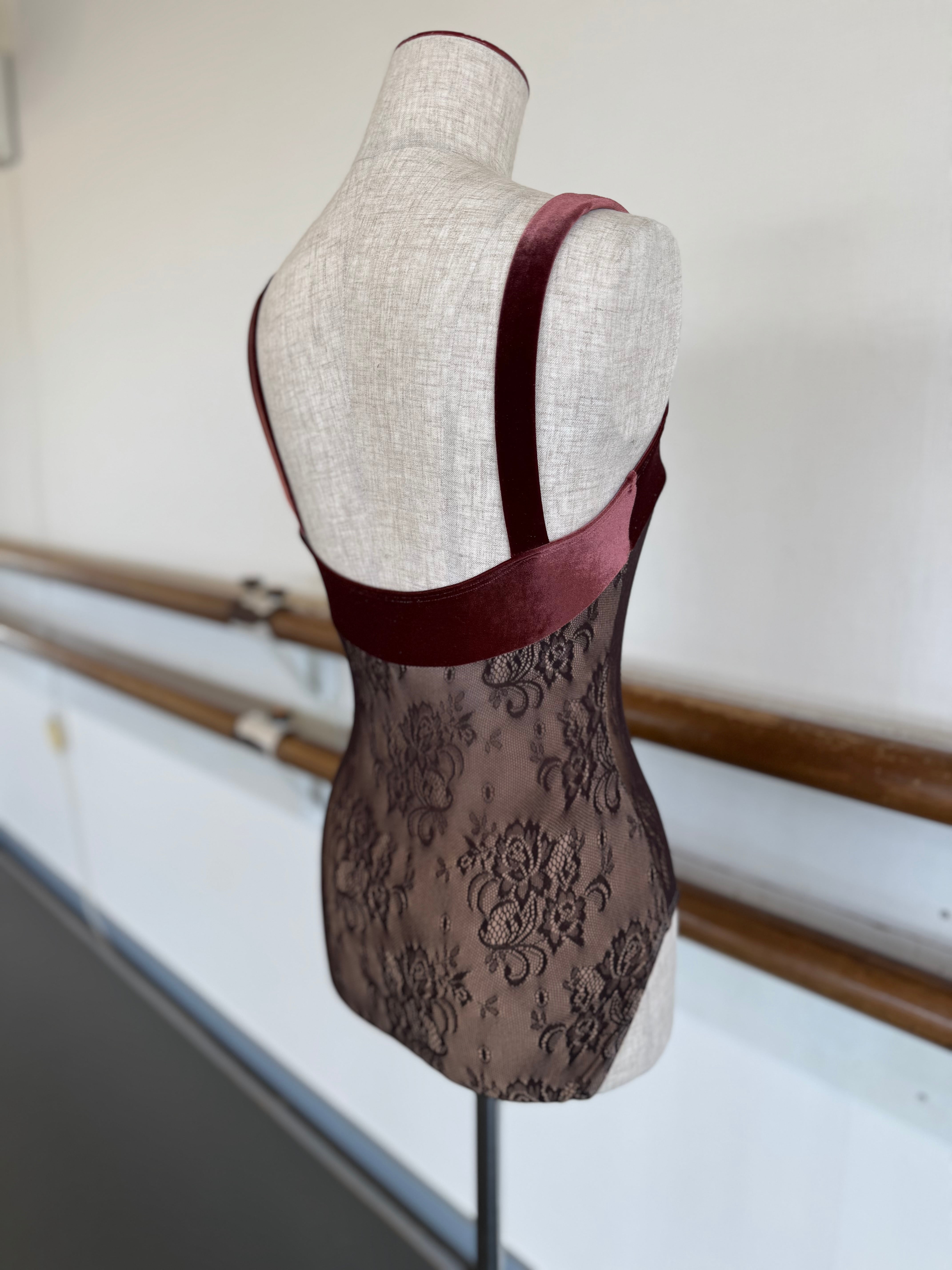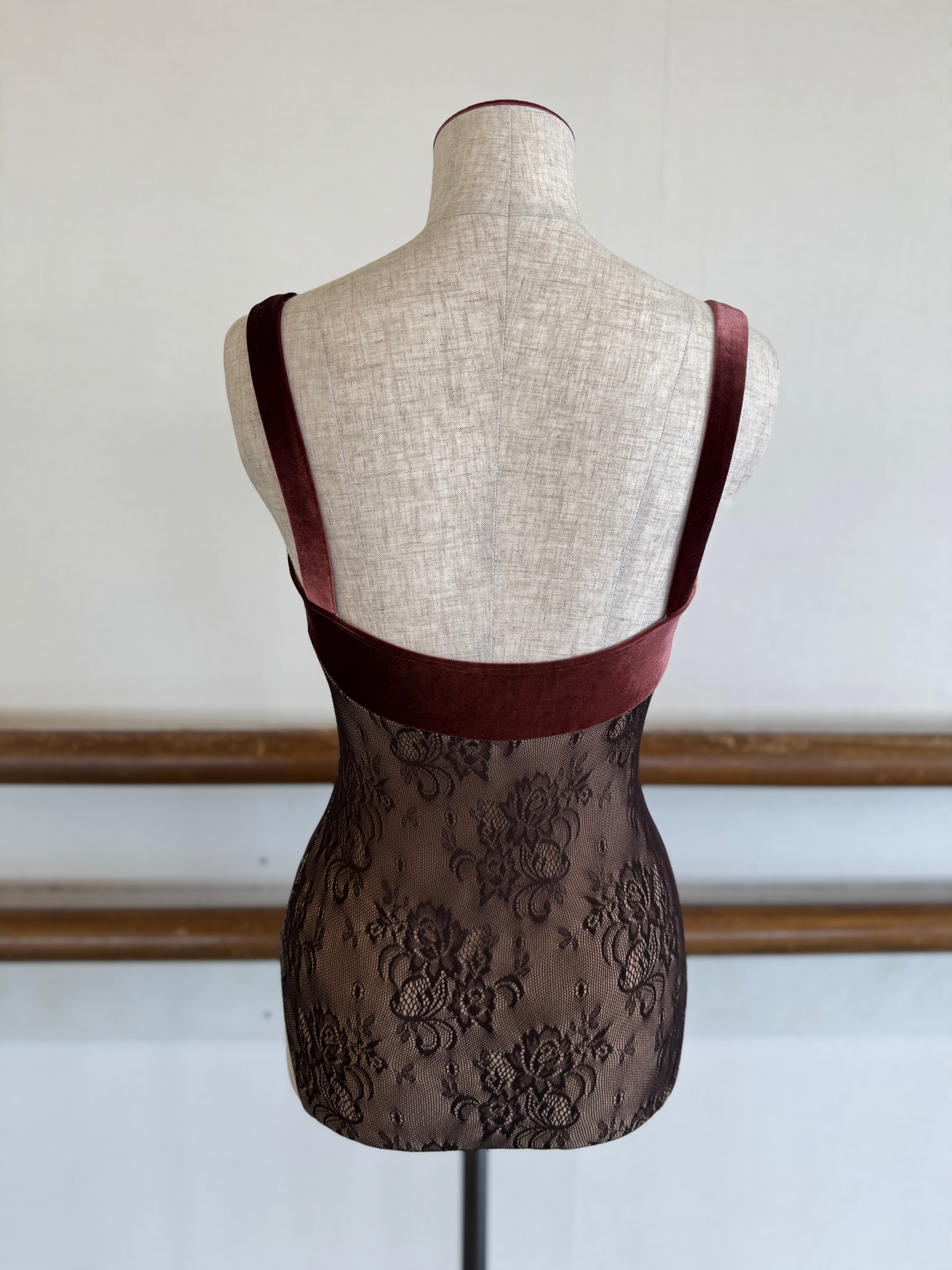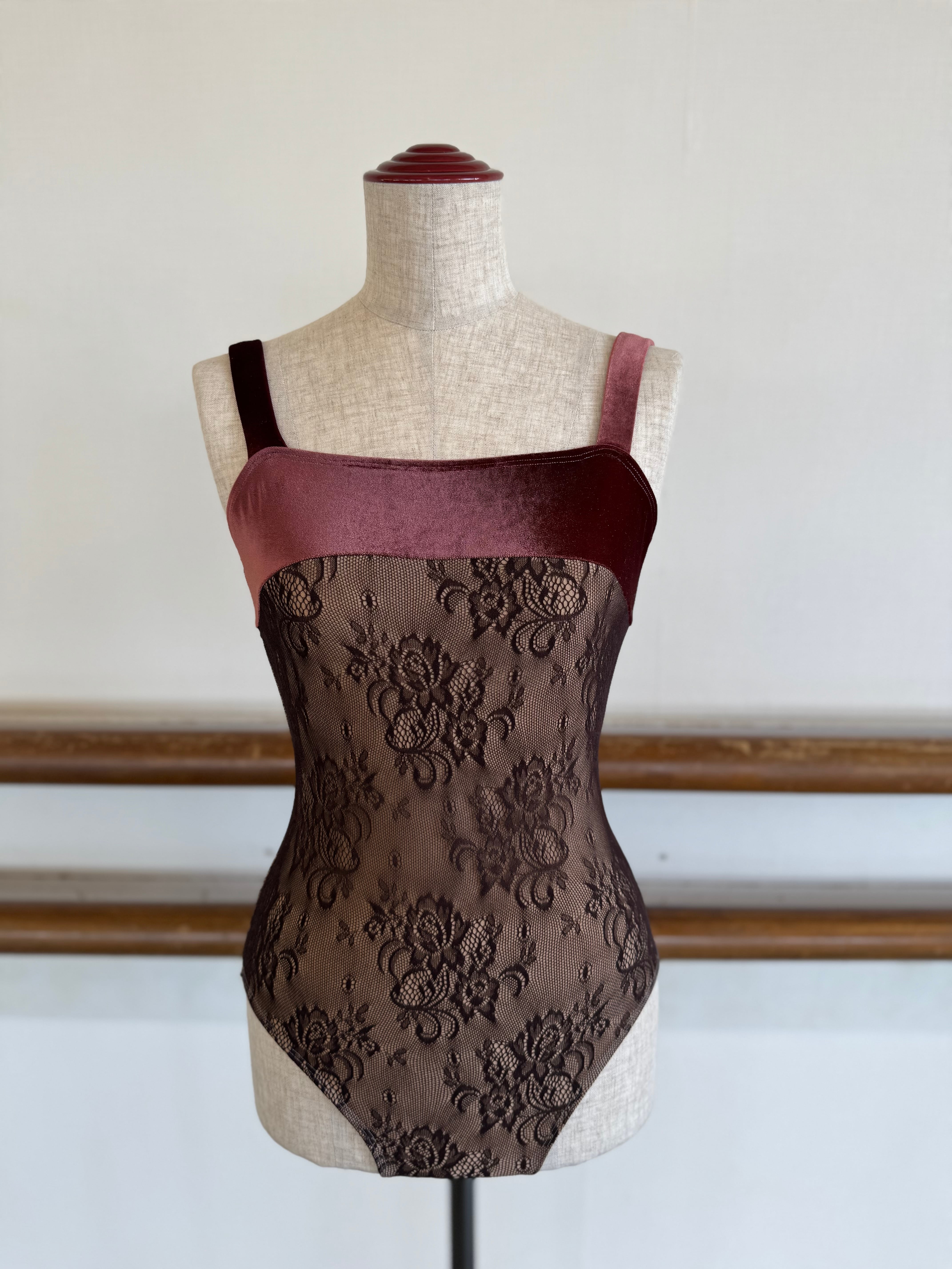 レオタード ボディレースベロアキャミソール ブラウン | k.mishel_