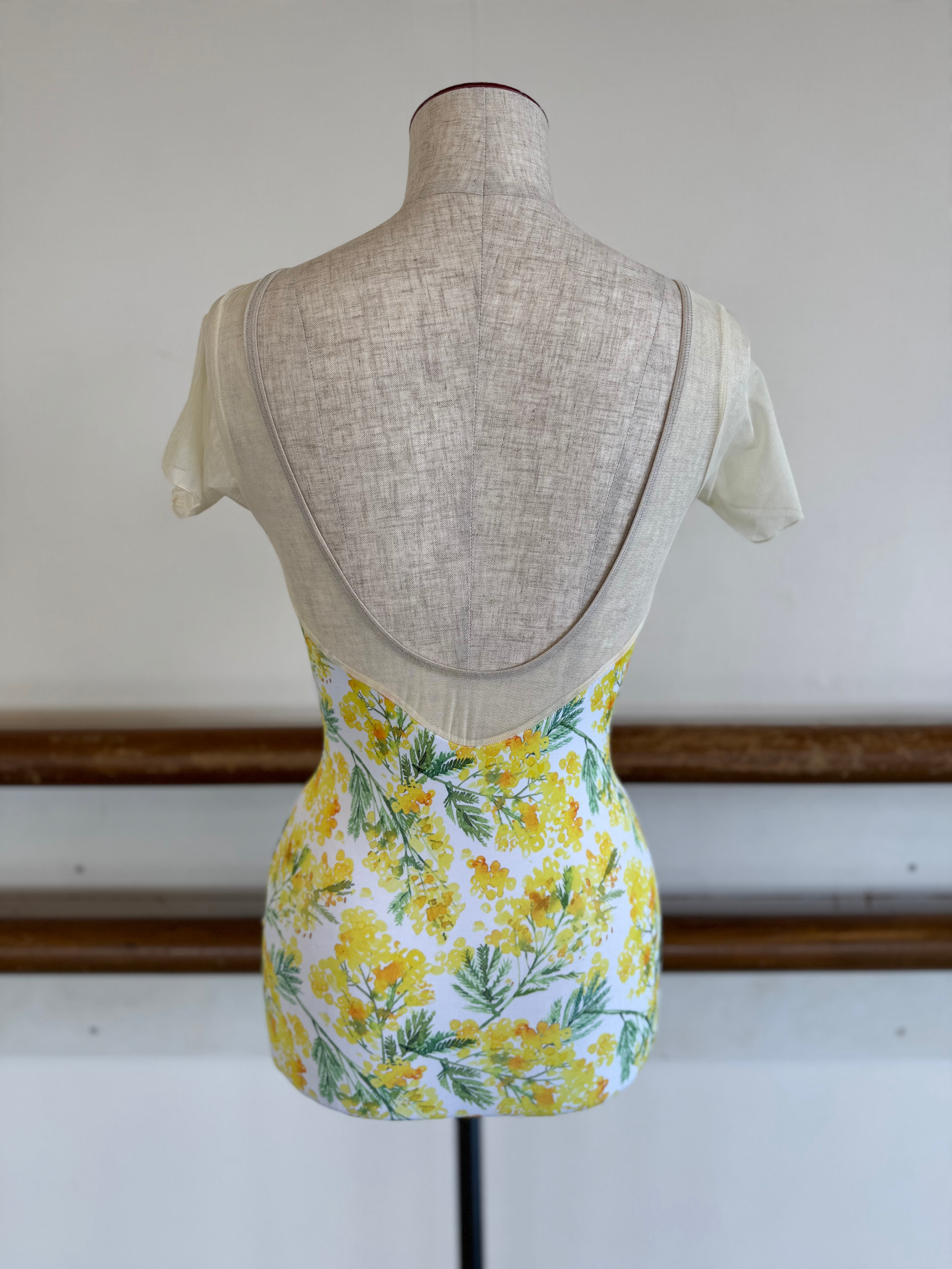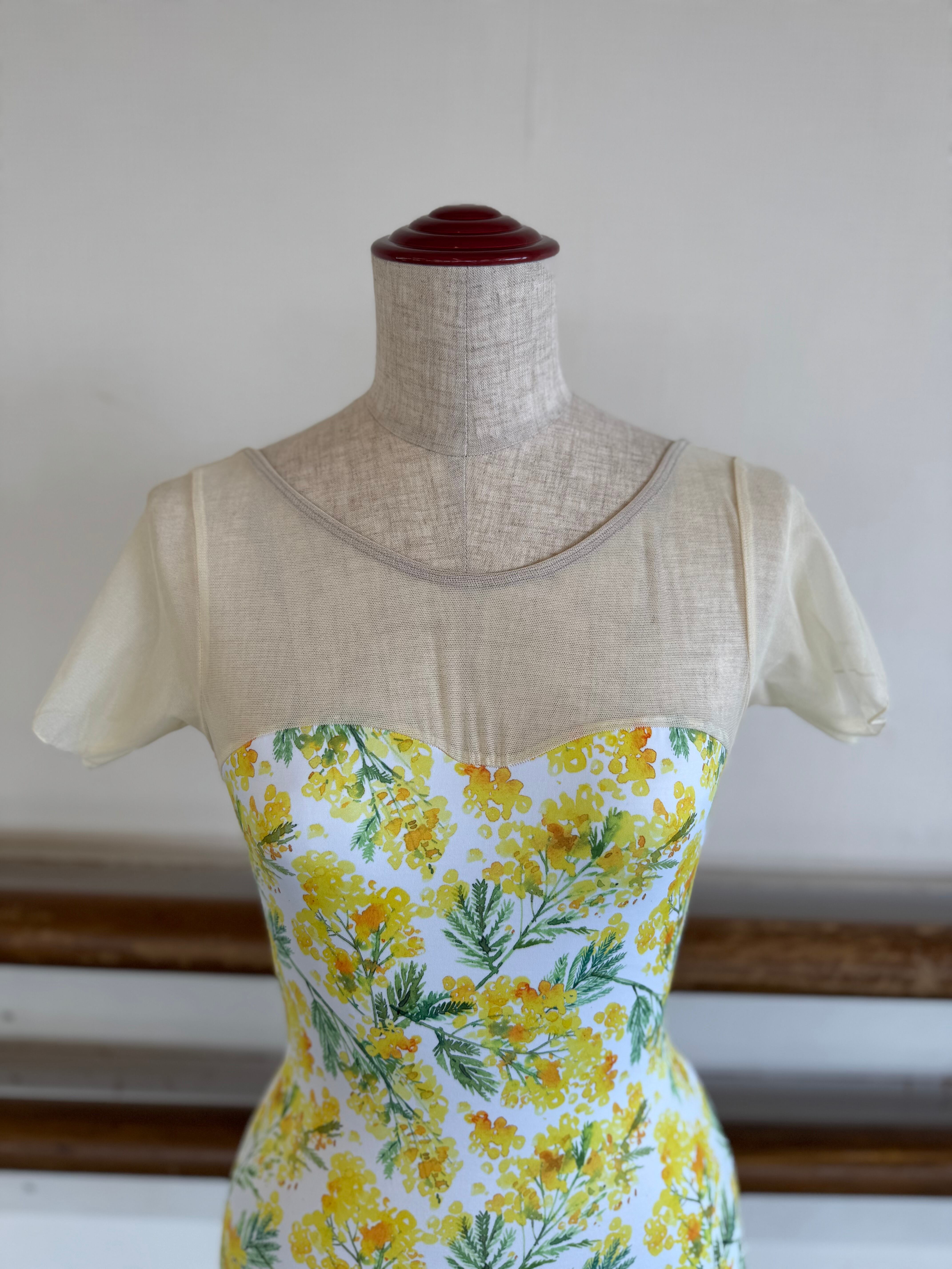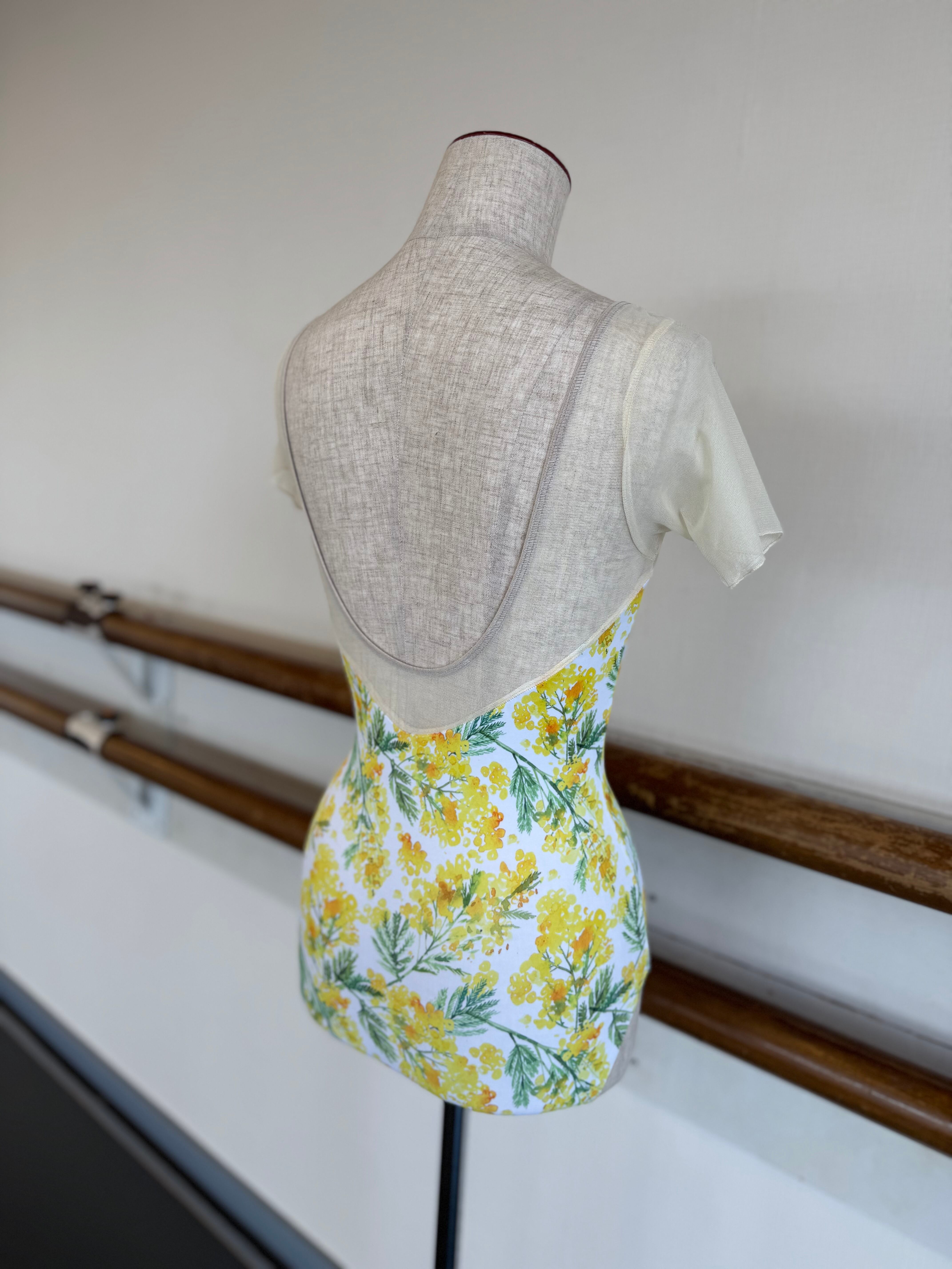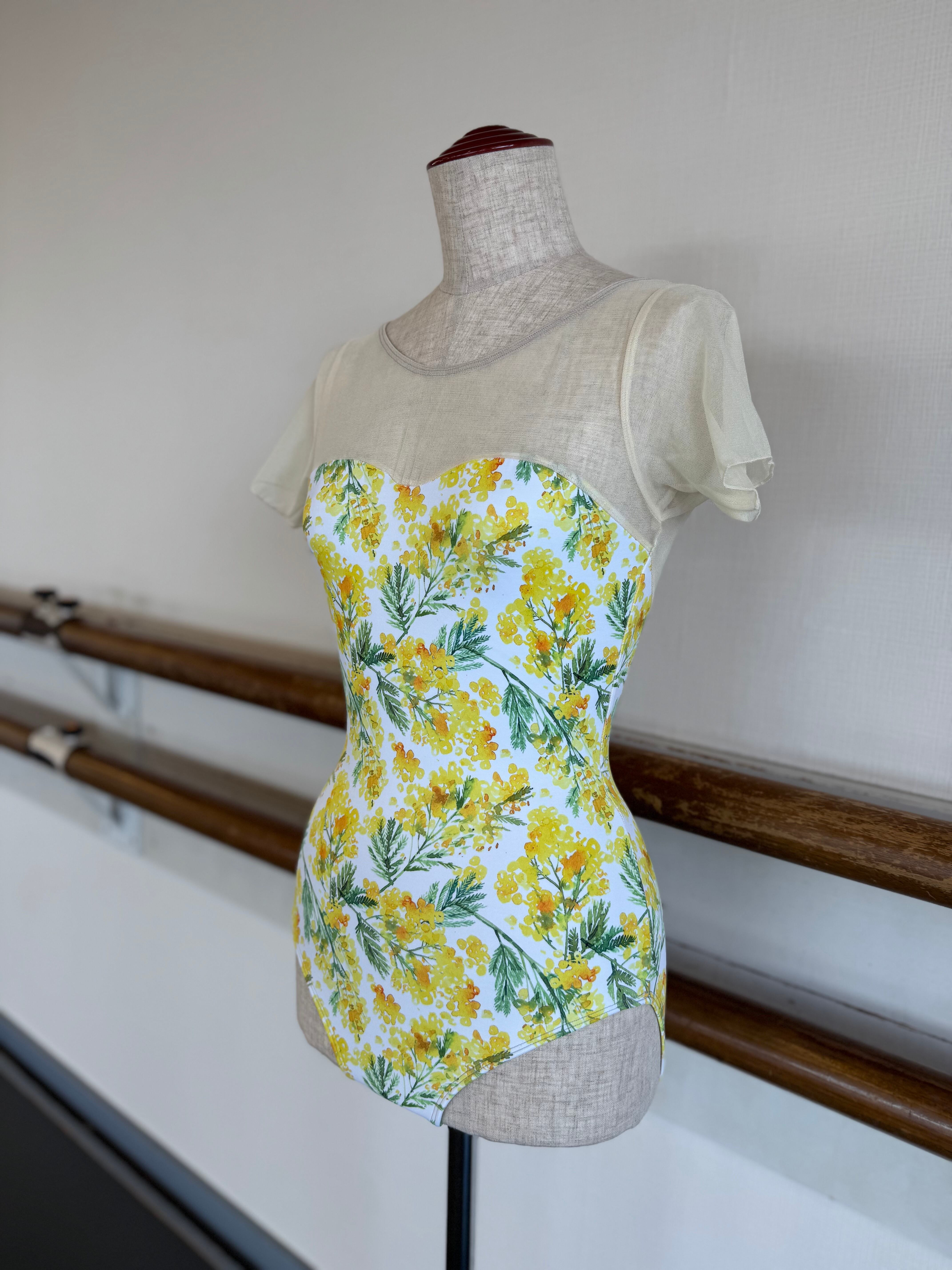 シアー生地の半袖デザインに、可愛らしい花柄を組み合わせたデザインです。