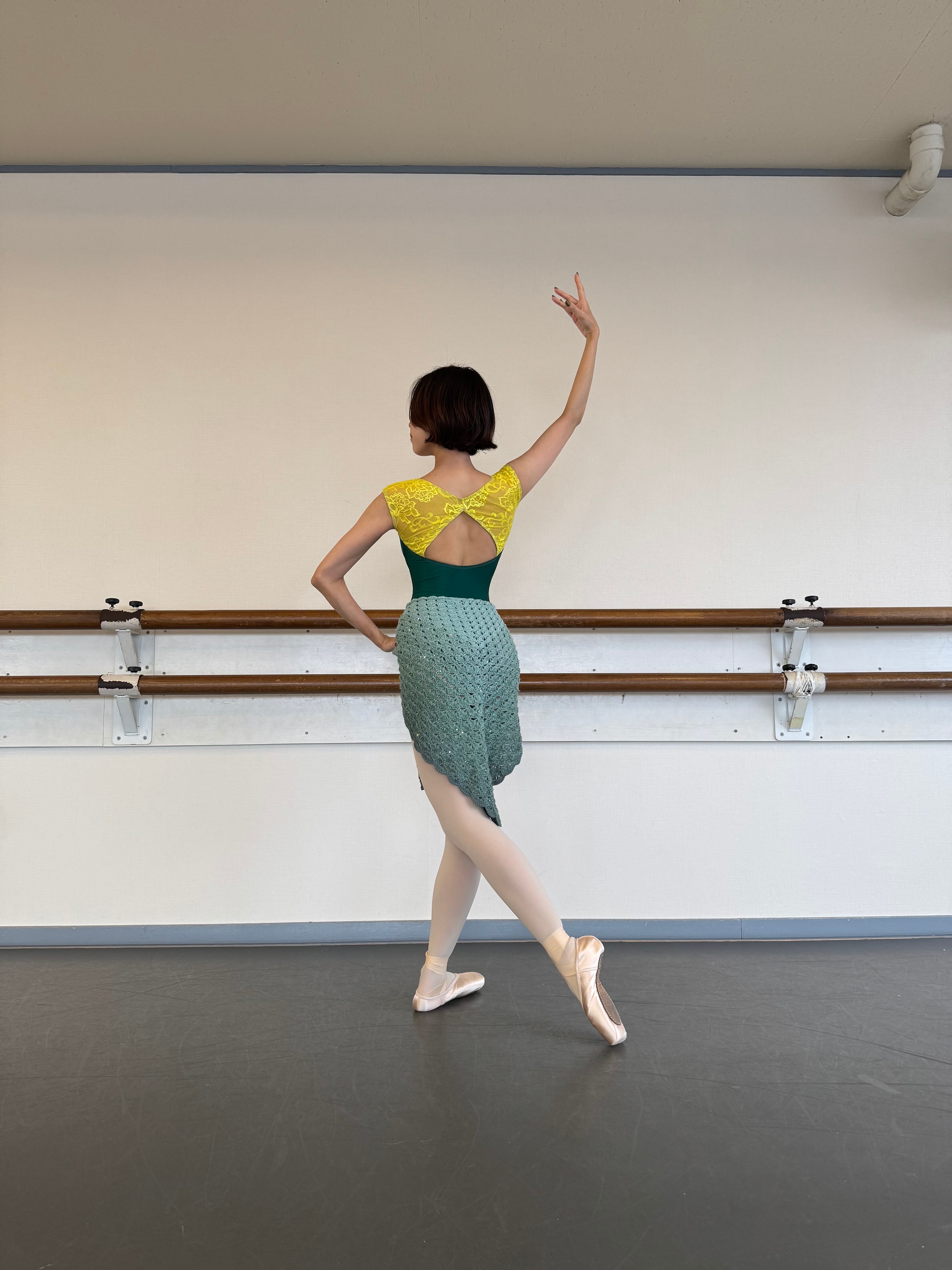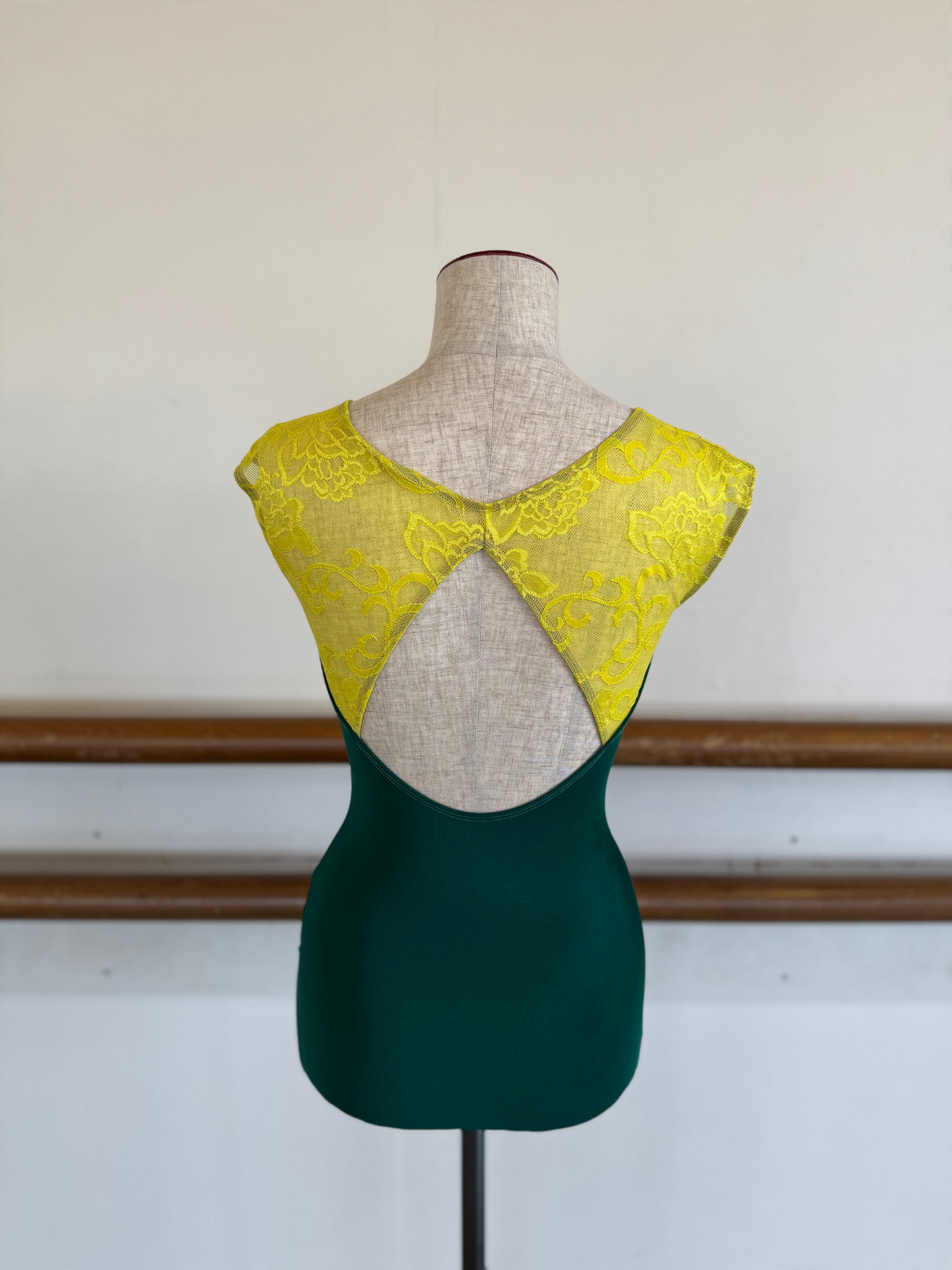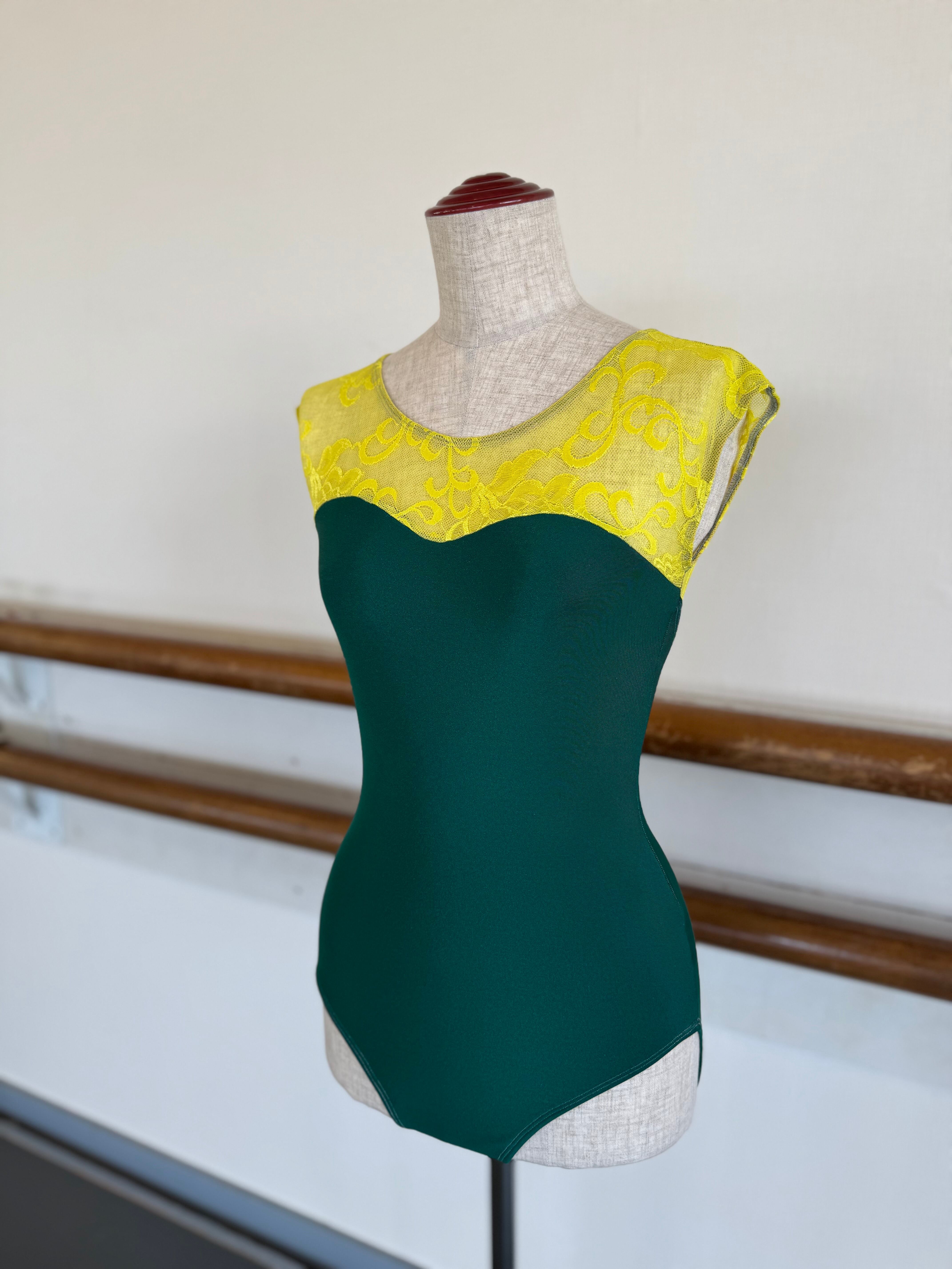 レオタード ハート型フレンチスリーブ イエローグリーン