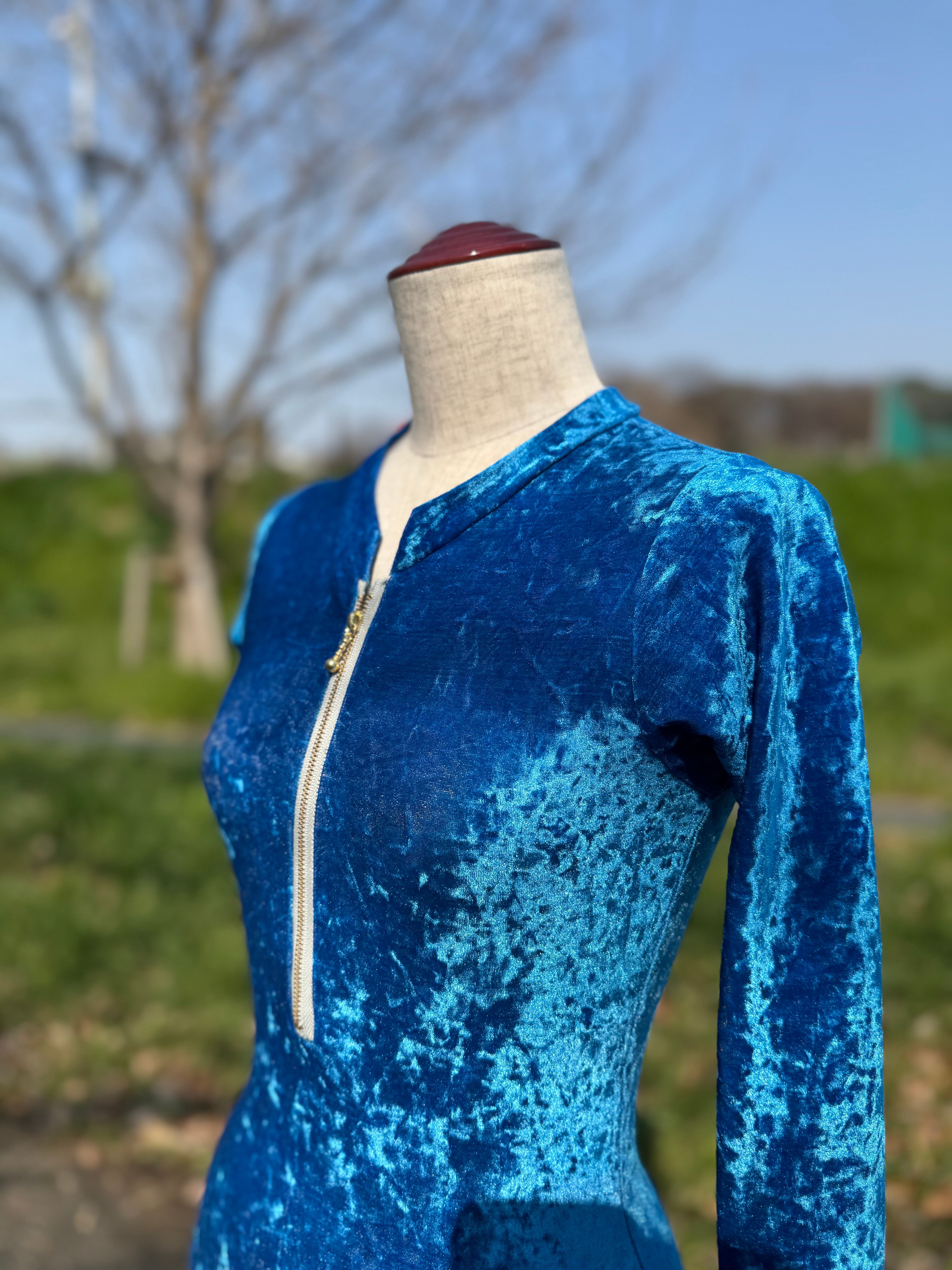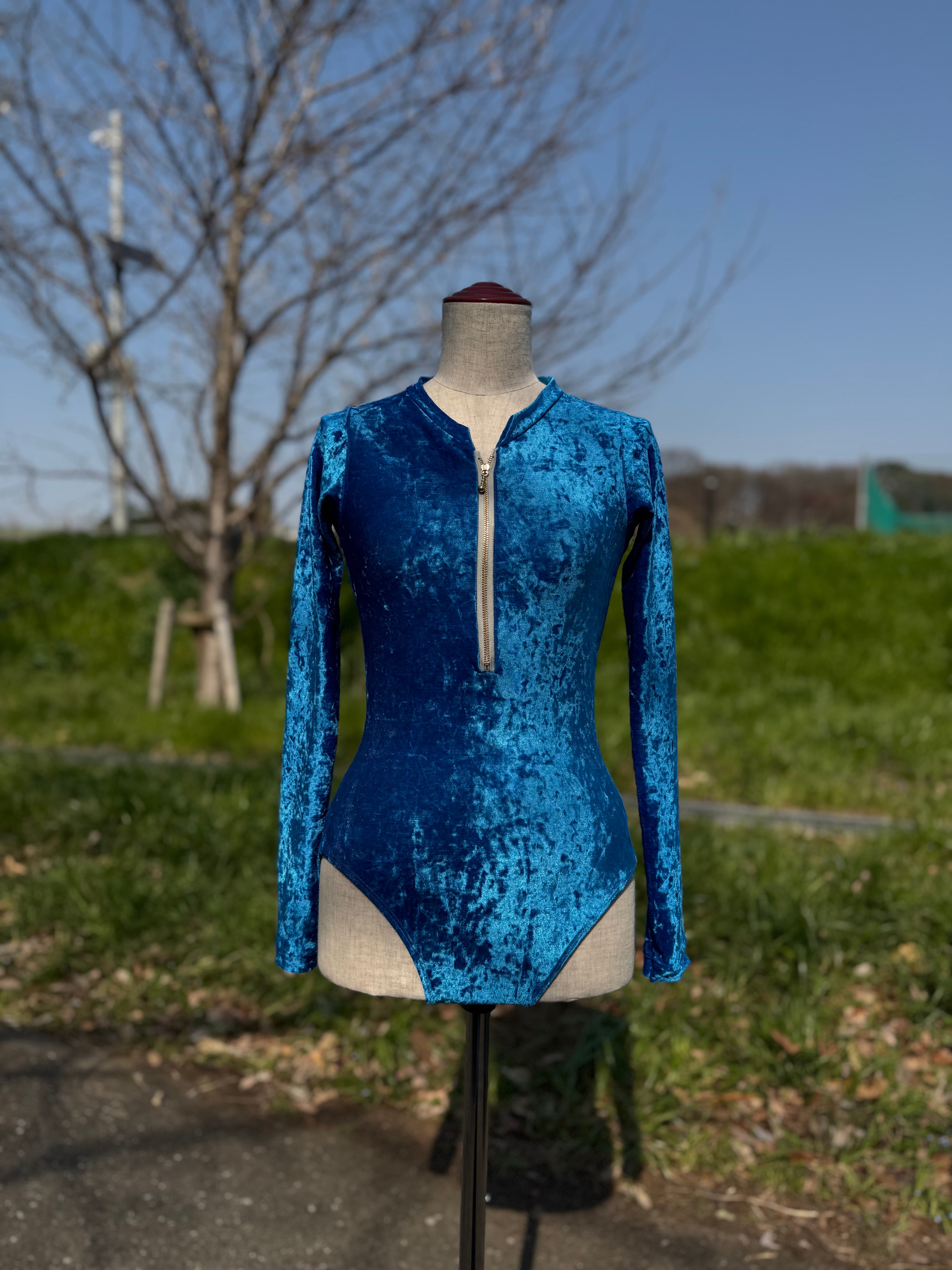 全身にベロア生地を使った、ジップタイプの大人っぽい仕上がりとなっています。