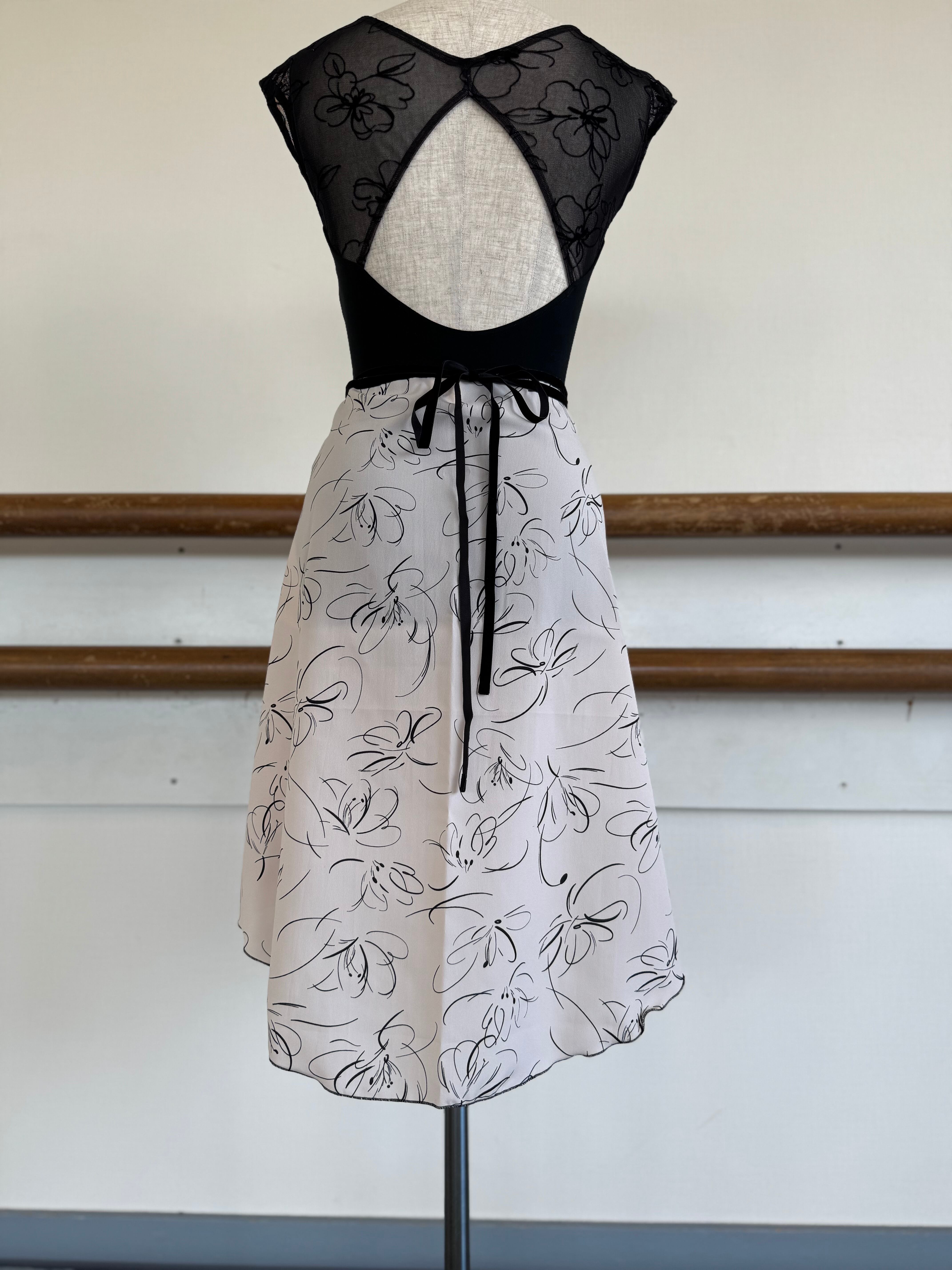 ベロアリボンを結ぶデザインとなっており、大花柄が可憐かつ上品な印象です。