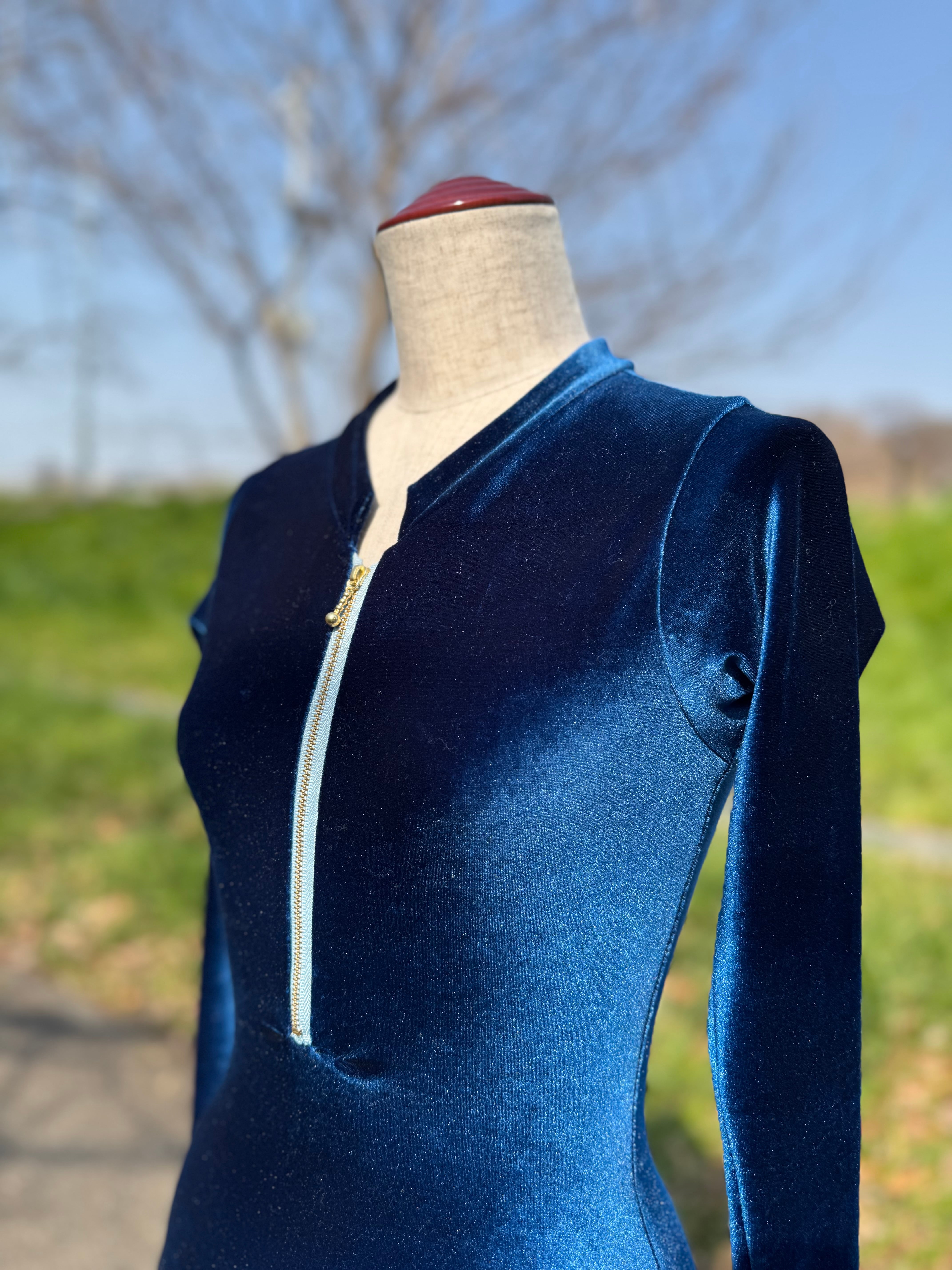 全身にベロア生地を使った、ジップタイプの大人っぽい仕上がりとなっています。